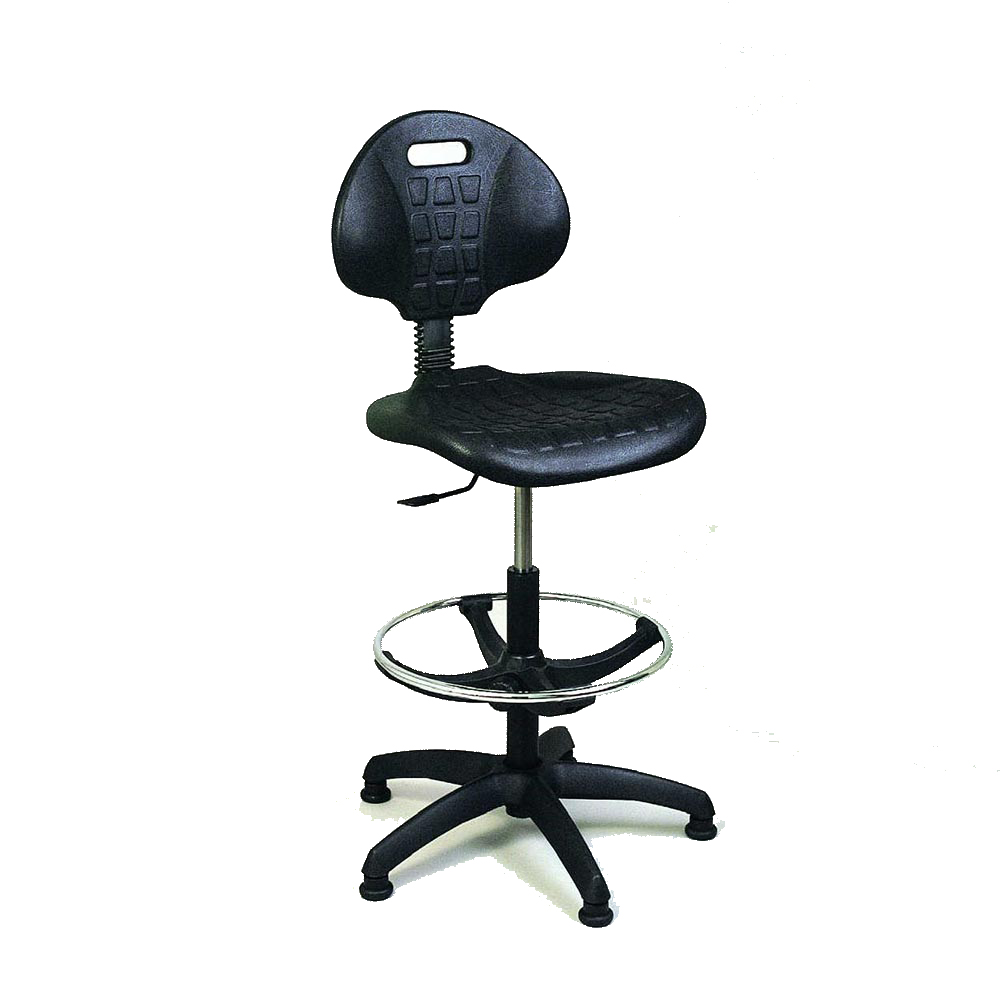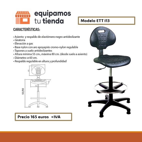 Silla giratoria color negro, con apoyapiés y regulable en altura.