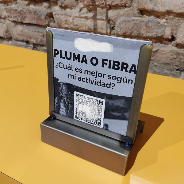 Soporte Porta cartel con ligera inclinación para colocar sobre MESA O ESTANTE.